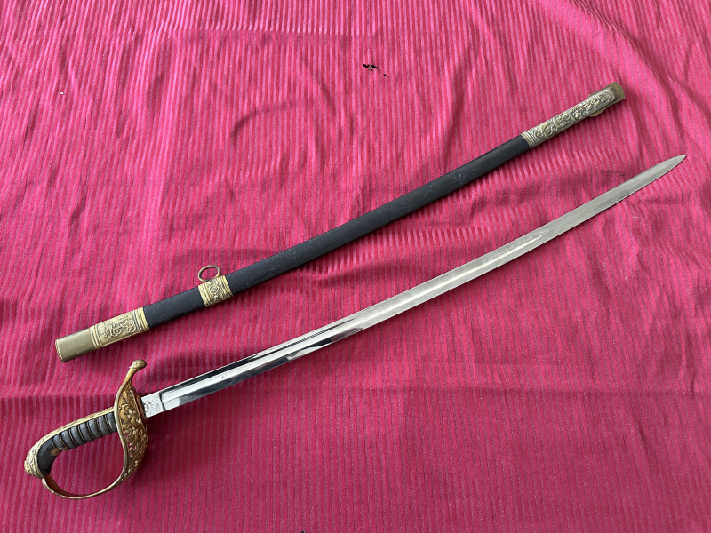 Gelegenheit aus großer Sammlungsauflösung !Guter,originaler Erhaltungszustand und so komplett sehr selten!Ornamentales Rankenwerk,Messinggefäss vergoldet,Klinge sehr gut,vernickelt.Tolles Exemplar voller Geschichte in schönem Zustand.Länge 93cm.Die Bilder als Beschreibung beachten.Von privat ab 1€ ohne Rücknahme.EU-Ausland Versandkosten 35€.