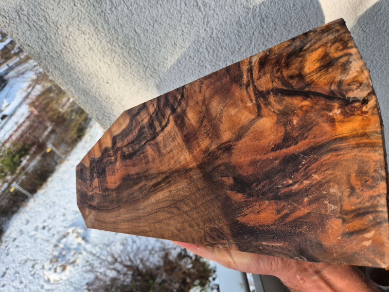 Sehr schöne volle wilde Maserung aus dem Wurzelstock....Der Rohling hat einen sehr seltenen Art von der Maserung und dazu das Holz hell aber dagegen die Maserung sehr dunkel (schwarz) ist, somit ein sehr seltener und traumhafter Rohling.