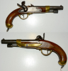 Französische Militär-Perkussionspistole Mle 1822 T bis, Lauflänge 20cm, Gesamtlänge 35 cm, Kaliber 17,7mm, keine Herstellerangabe, am 6-kantigem Laufteil leichte Feilspuren, ansonsten guter Zustand