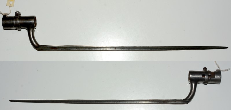 Französisches Tüllenbajonett Mle 1771, Klingenlänge 39,7cm, Gesamtlänge 47,4 cm, Innendurchmesser der Tülle 22mm, auf der Klingenwurzel schöne Marke "EK", Altersspuren ohne wirkliche Mängel
