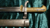 Recht saubere Jataganklinge mit Herstellergravur auf dem Klingenrücken, Messinggriff, Parierstange gestempelt "M510",Scheide nummerngleich. der Drücker funktioniert, mit Scheide, recht gut erhalten, wurde aber mal geputzt. Zustand 2-