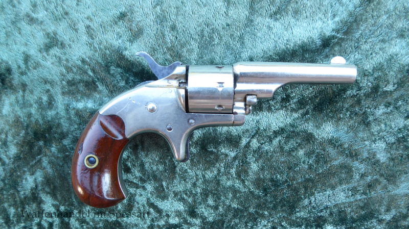 Kal..22short. Ser.Nr. 69078. Baujahr 1875. Scharfkantiges fast blankes Laufinnere. Sehr gute originale Werksvernickelung. Sehr gute stramme Mechanik. Gesamtlänge 14,5cm. Lauflänge 6cm.