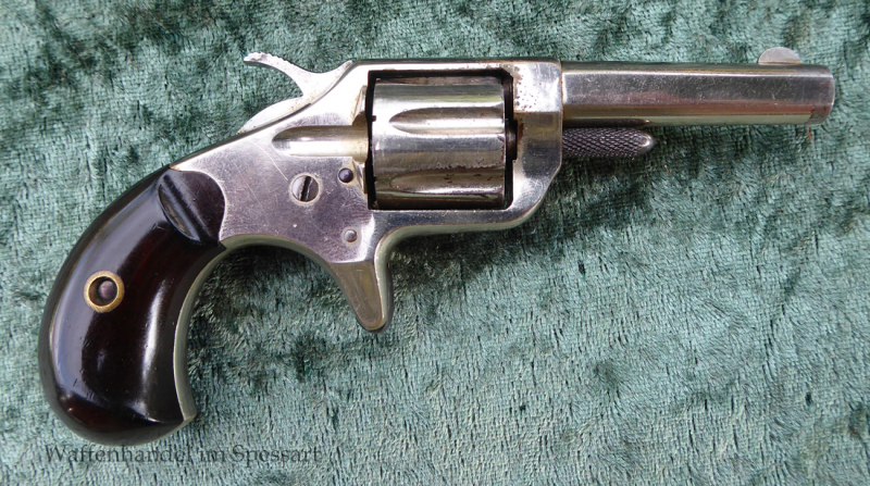Kal.22short. Ser.Nr. 32346. Scharfkatiges blankes Laufinnere. Die orig. Werksvernickelung ist bis auf geringe Fehlstellen erhalten. Sehr gute stramme Mechanik. Patentdaten vom 18Sept. 1874 unter dem Lauf.