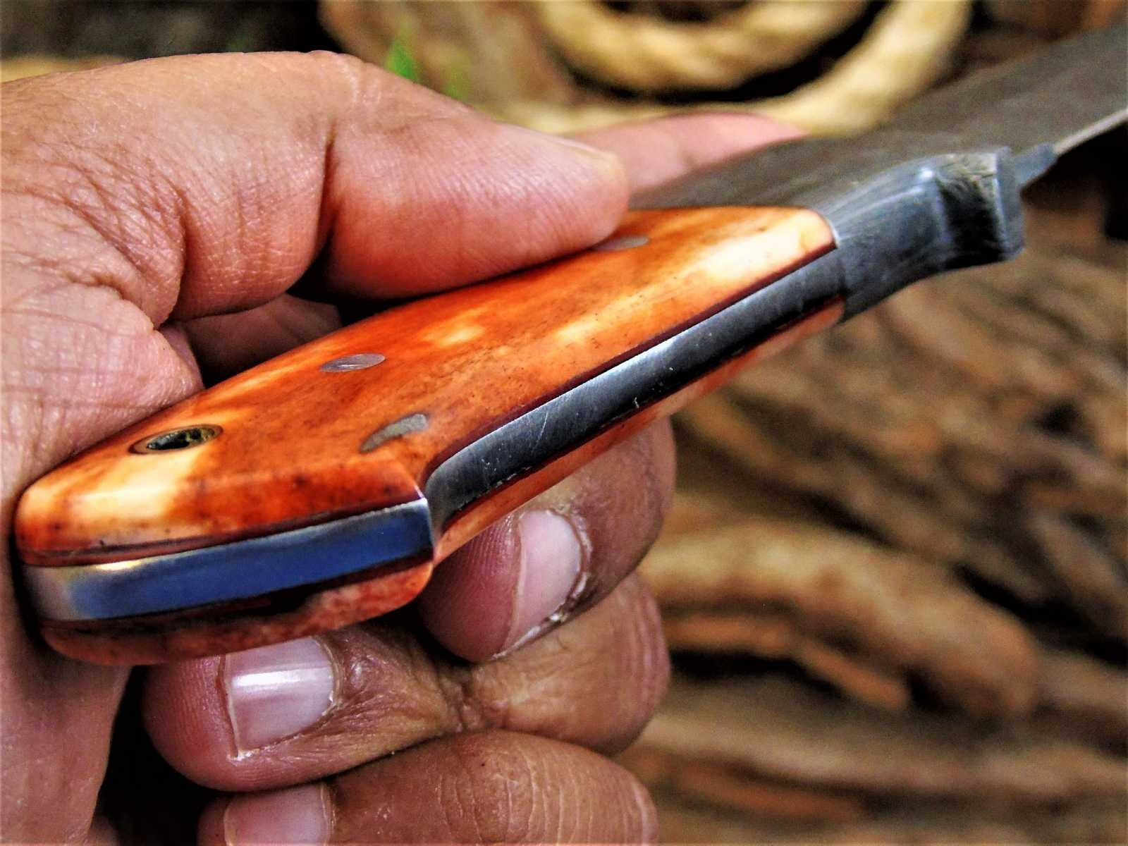 Unsere Messer sind handgefertigt. Da wir mehrere Stückzahlen pro Modell herstellen, können wir nicht jedes einzelne Messer fotografieren. Deshalb kann die Musterung der Klinge abweichen, sowie die Griffschale etwas heller oder dunkler ausfallen. Dies sind keine Mängel, sondern ein Zeugnis für Ihr handgefertigtes Unikat.