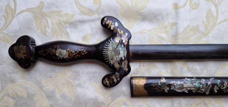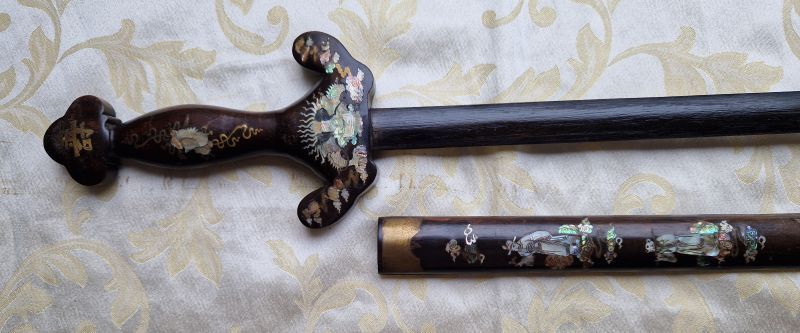 Antikes Hochzeitsschwert? Südostasien um 1900, feine Perlmutteinlagen.