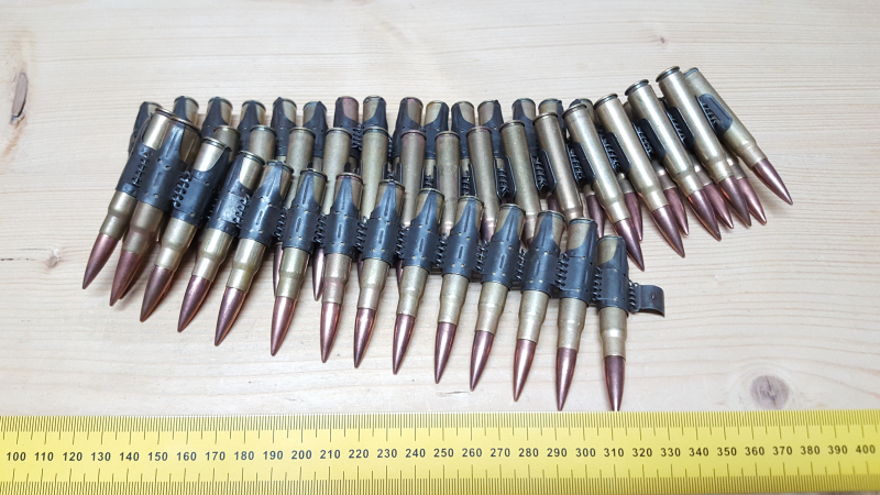 Sammlermunition: 50 Dekopatronen 7,9mm auf Gurt Deutsch 2.WK..