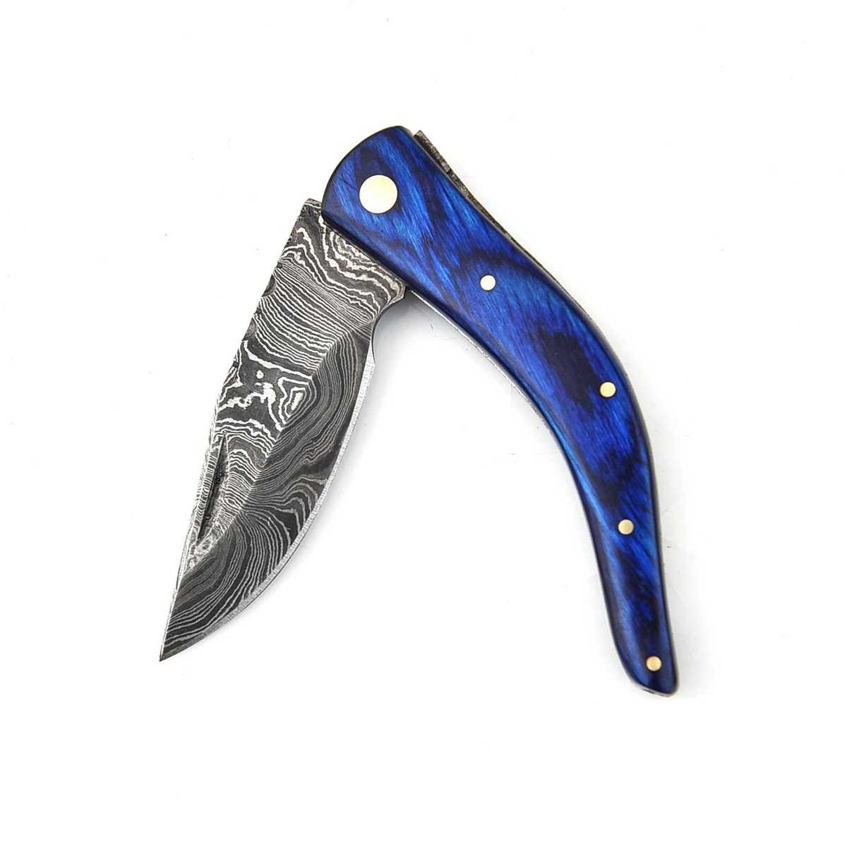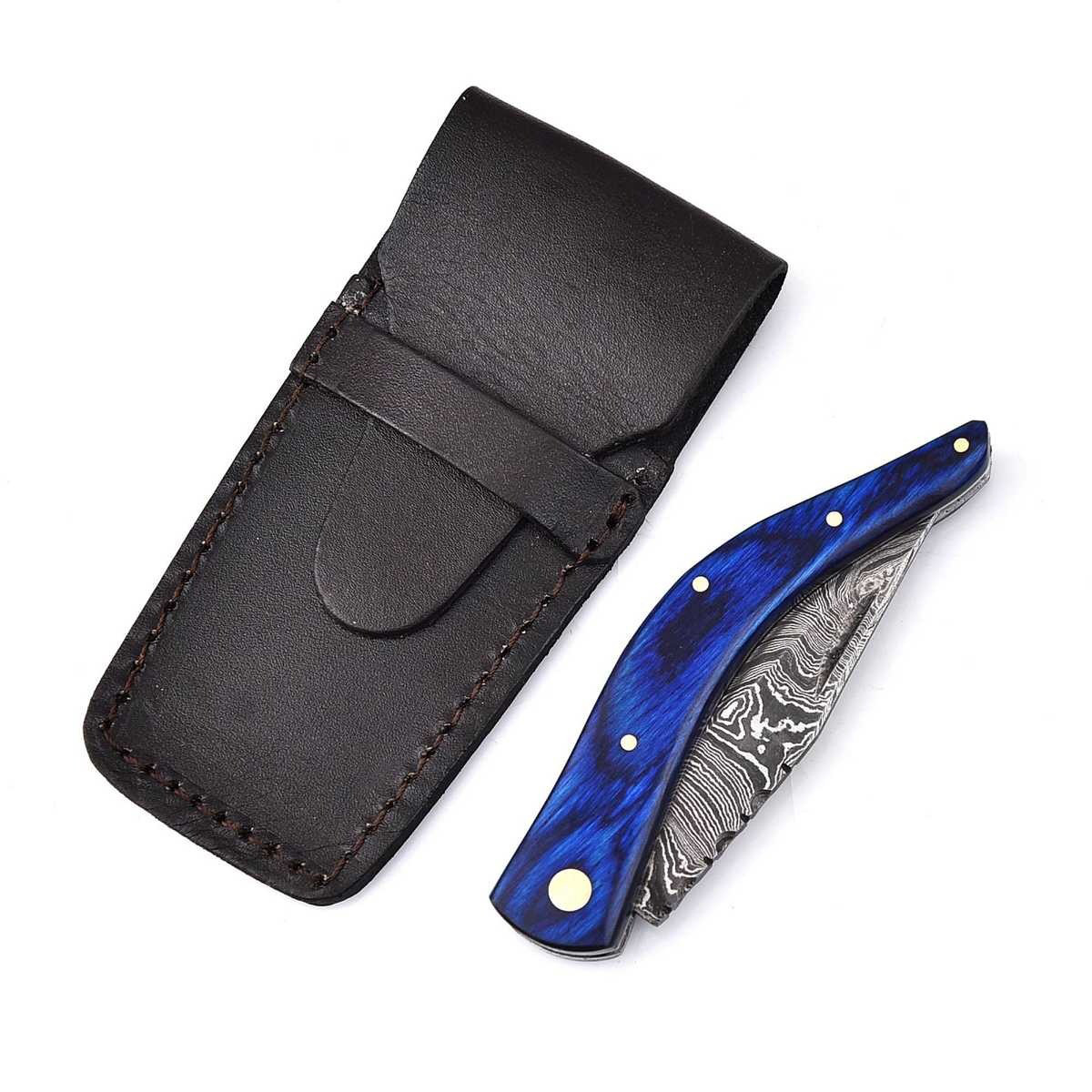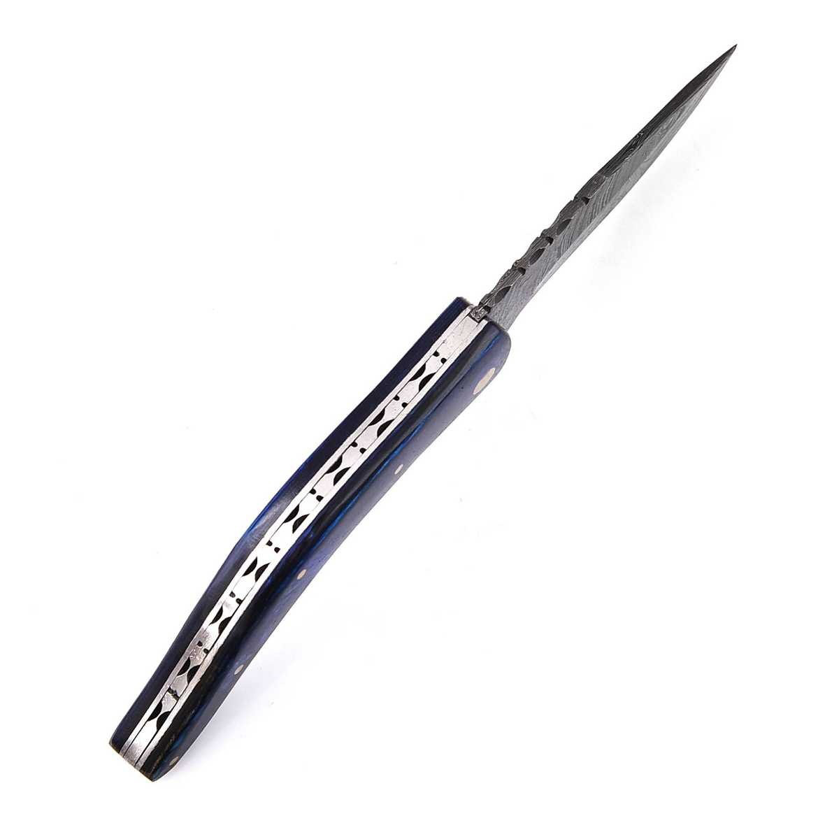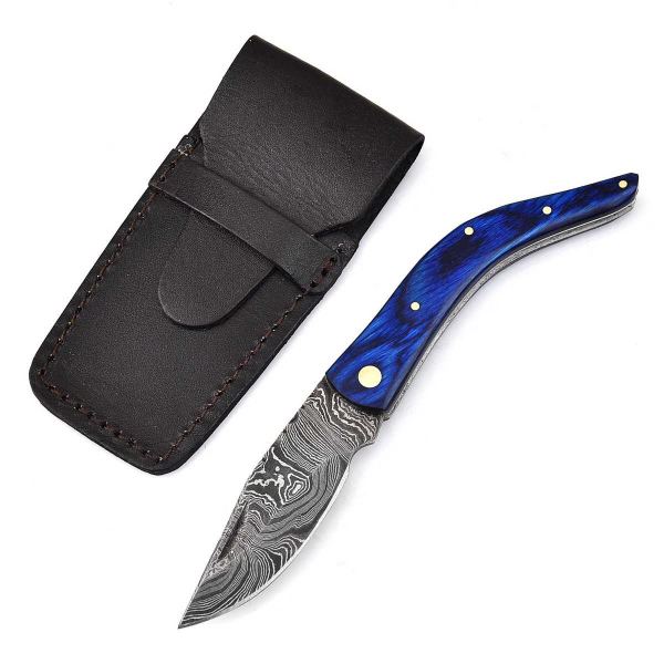Hier erhalten Sie ansprechendes Hand geschmiedetes Damast Taschenmesser in reizvollem Damast Torsion Muster. Die ebenfalls Hand gefertigte Leder Scheide besteht aus hochwertigem Rind Leder.