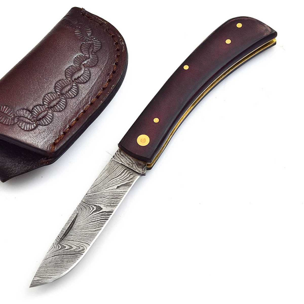 Hier erhalten Sie ein sehr schönes handgeschmiedetes Damast Taschenmesser / Klappmesser in reizvollem Torsion Muster.