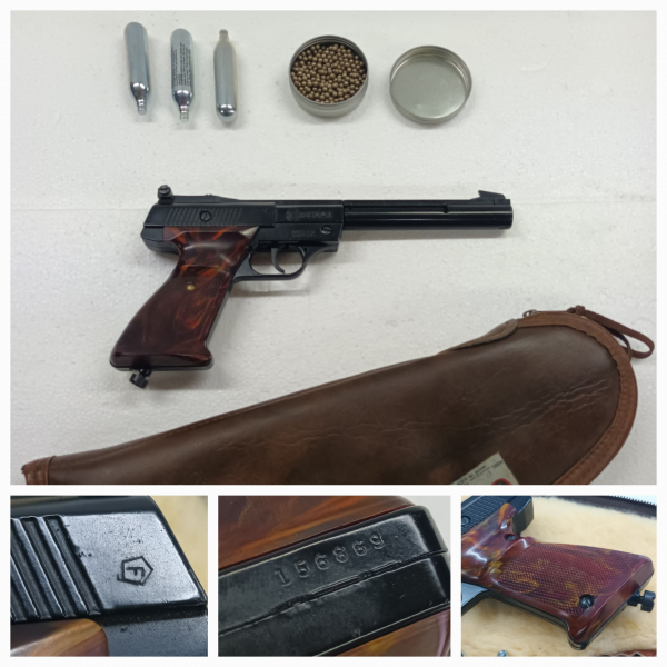 1.Crosman Modell 454 KOMPLETT SET im Cal. 4,5mm BB. Im Set inbegriffen wäre etwas Munition + 1. Pistolen Tasche + 3 volle CO2 Katuschen und natürlich die Waffe. Die CO2 Luftpistole ist absolut Dicht und wurde übere mehrere Tage getestet. Schussbereitschaft ist gegeben. Keine Diabolo LP, sondern BB = Stahlkugel Geschosse werden hiermit verschossen !!!! KEIN BILLIGER PLASTIK MIST / Absolut Hochwertige METALL CO2 Druckluft Waffe------