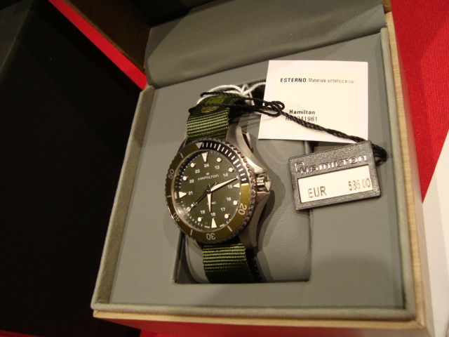 hallo liebe Egunner , verkaufe tolle Jägeruhr ( Taucheruhr ) ; Schweizer Marke Hamilton, 100m wasserdicht; Saphirglas !!; schweizer Quarzwerk; verschraubte Krone, 2 Jahre alt ; alle Kauf-Unterlagen, Box etc. anbei ; starke Leuchtindizes , hatte sie 3x getragen ; Armband auch neu; Durchmesser 38 mm; Stegbreite 18 mm; verschraubter Boden , LP 715,00€,