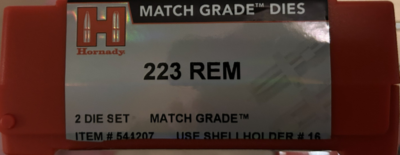 Zum Verkauf steht hier mein Matrizensatz von Hornady, Matchgrade in .223 rem, mit Setz und Vollkalibriermatrize.