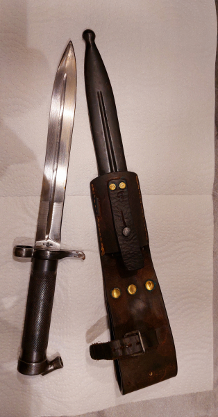Ich biete ein orig. schwedisches Bajonett M1896 mit Stahlscheide und Koppelschuh an.