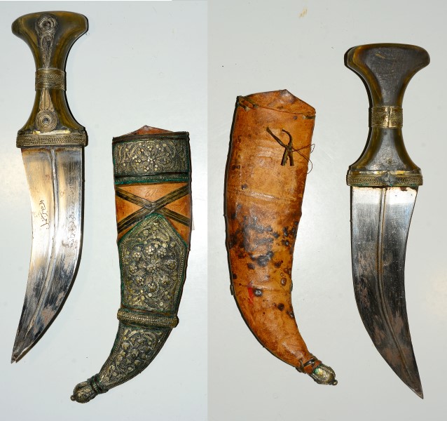 Jambia Dolch, wahrscheinlich Jemen, sehr schön und filigran verzierte Scheide, Horngriff, Klingenlänge 16,6cm, die Klinge ist möglicherweise erneuert.