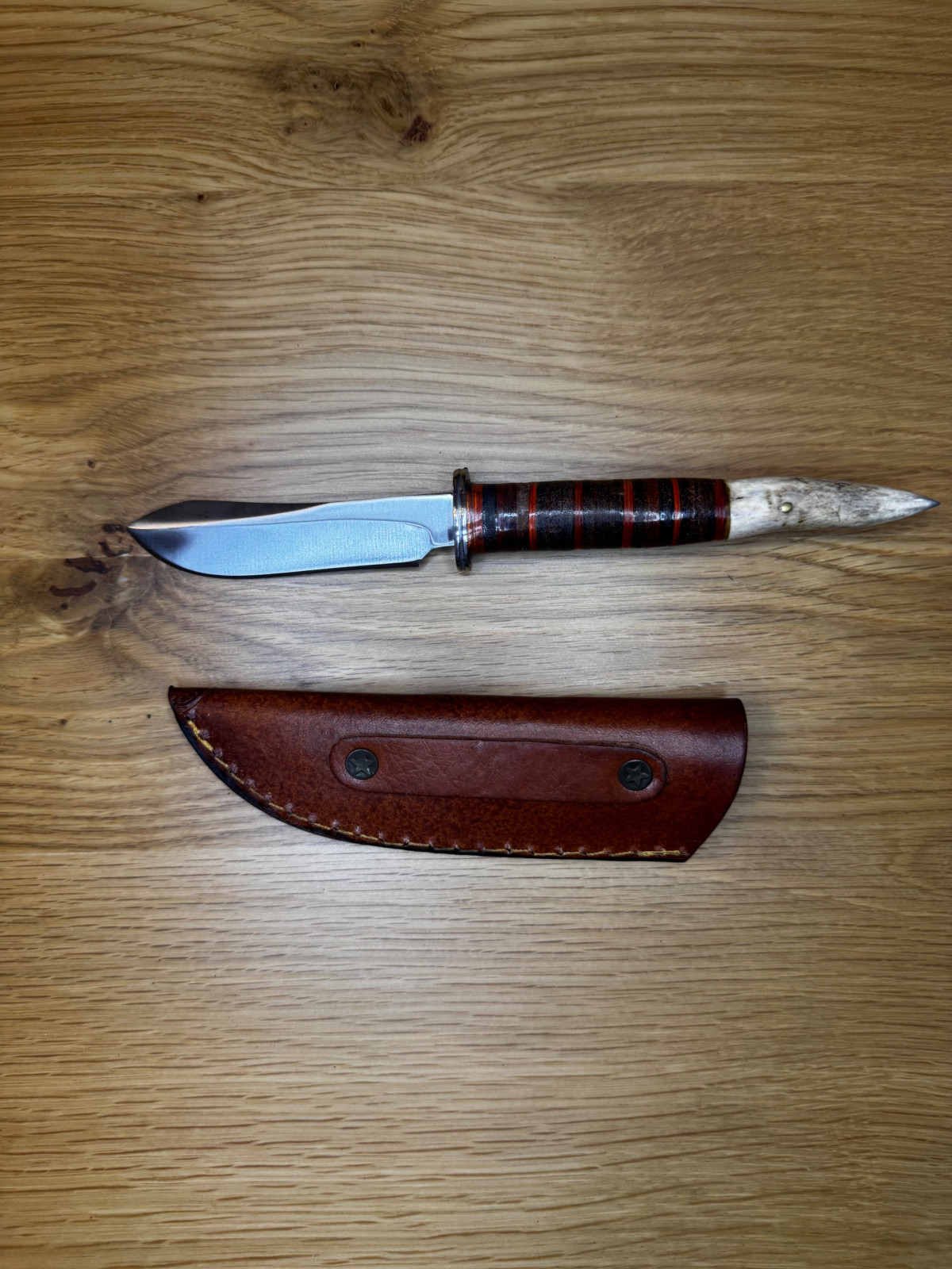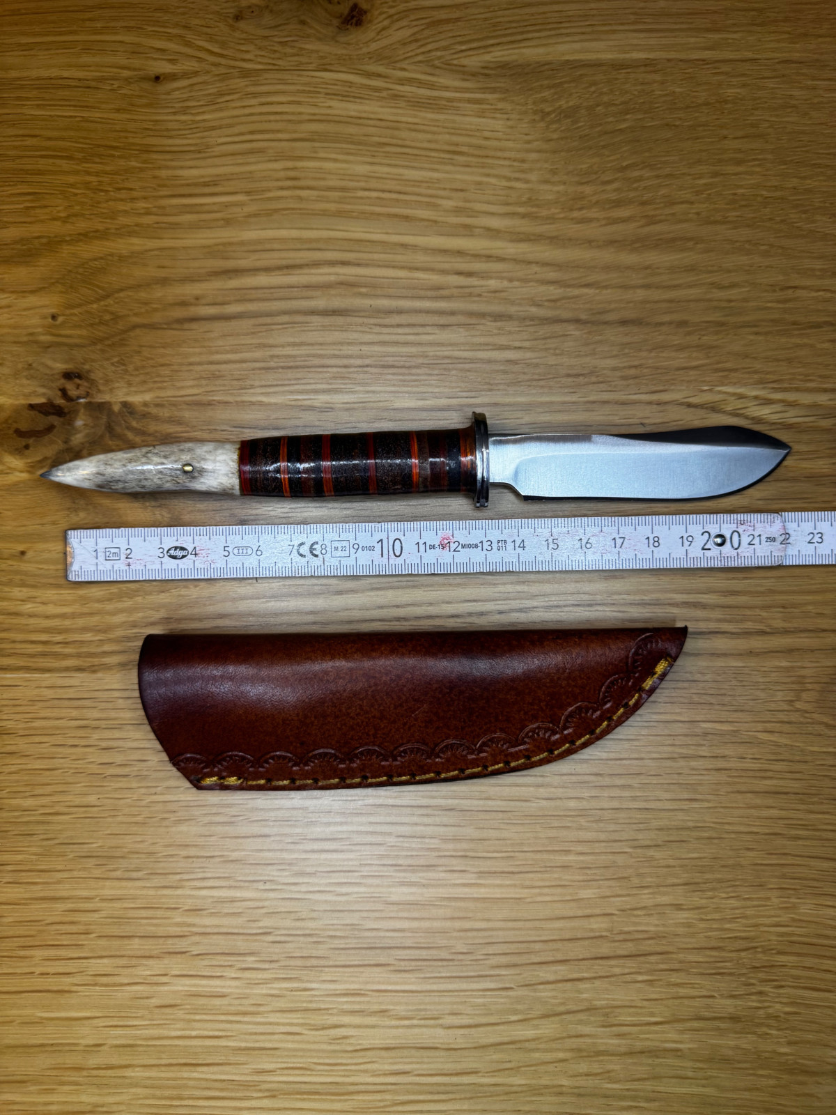 Angeboten wird ein feststehendes Messer mit Lederscheide aus meiner privaten Sammlung.