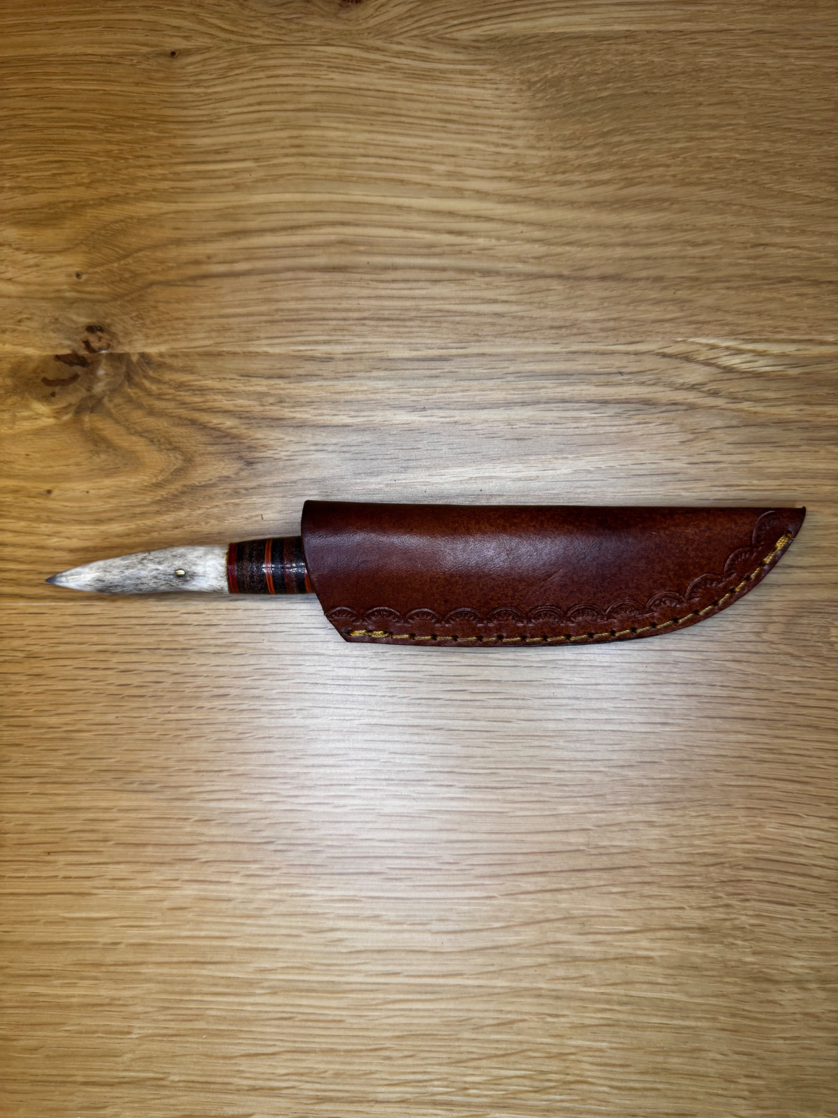 • Braune Lederscheide, handwerklich vernäht