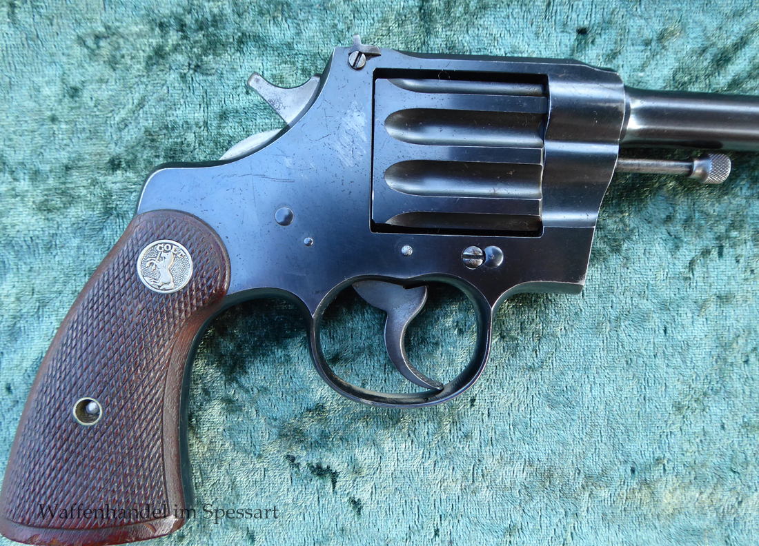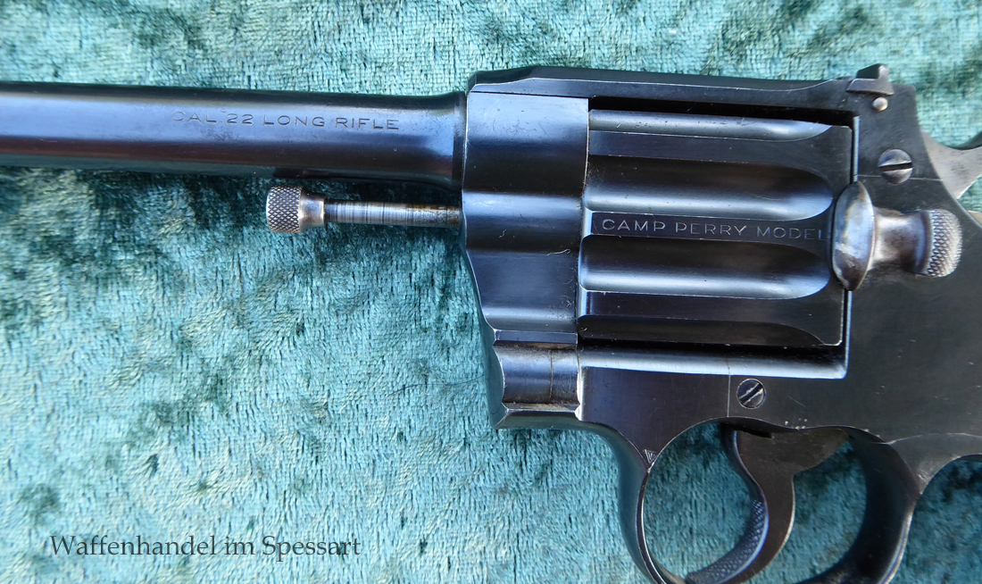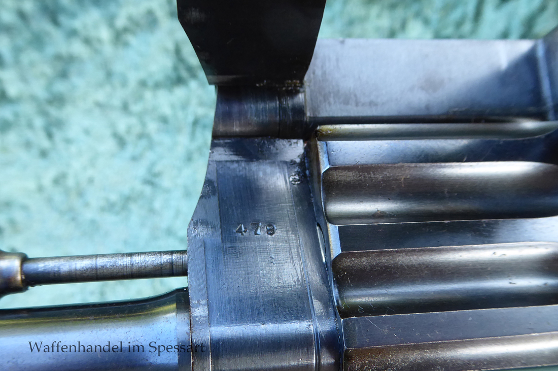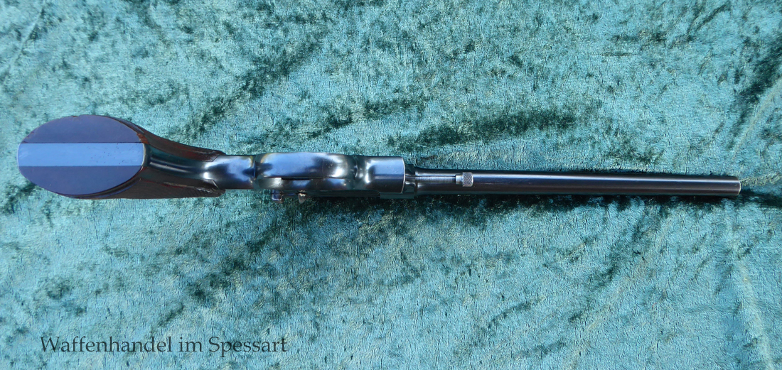 Kal..22lr. Ser.Nr. 479. Scharfkantiger fast blankes Laufinnere. Lauflänge 8" = 21cm. Sehr gute bläuliche orig. Brünierung. Bei der Firmierung auf der Laufoberseite Patente bis 1926. Baujahr 1927.
