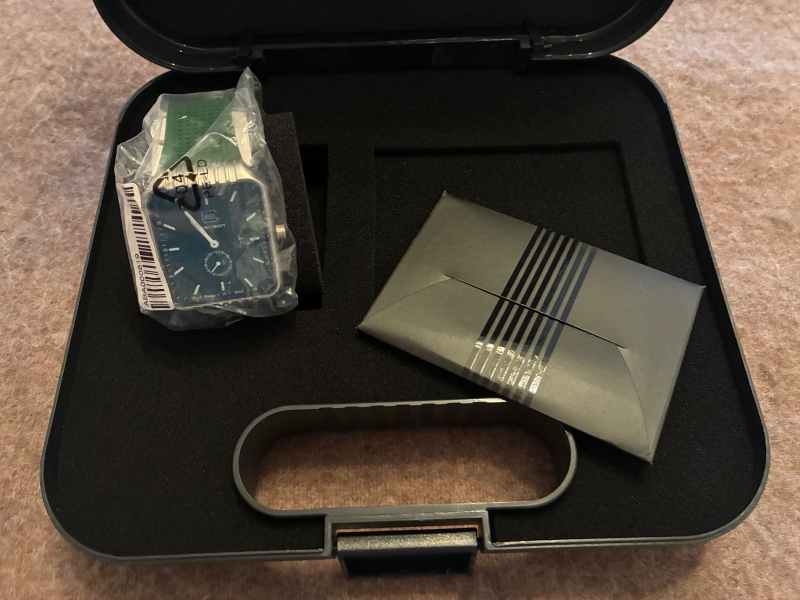Ungetragen, originalverpackt im kultigen "Waffenkoffer", mit Papieren und Kaufbeleg. Gekauft Dezember 2025.