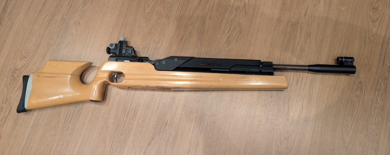 Servus zusammen, ich verkaufe hier das gebrauchte Hämmerli 450. Es ist dem Alter entsprechend mit Gebrauchsspuren versehen. Beim Verschlusshebel ist die linke Entrieglungsseite des Hebels nicht mehr vorhanden (siehe Foto), das Schließen und Öffnen funktioniert aber trotzdem, wie es soll. Beim Spannen des Gewehrs entweicht Luft und es kann kein Druck aufgebaut werden. Bei anderen Hämmerli 450 war es immer entsprechend die Dichtung, die erneuert werden musste, hier könnte es ebenso so sein. Ich verkaufe das Gewehr deshalb als defekt. Mit dabei ist ein verstellbares Ringkorn (siehe Foto) und eine Gewehrtasche mit der Aufschrift (SV Virnsberg).