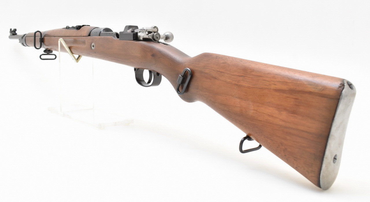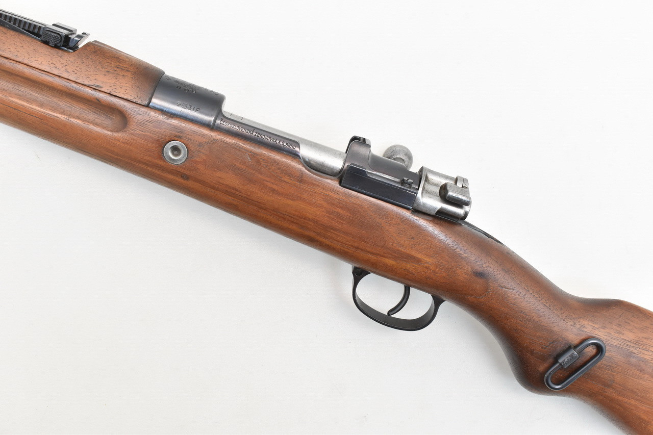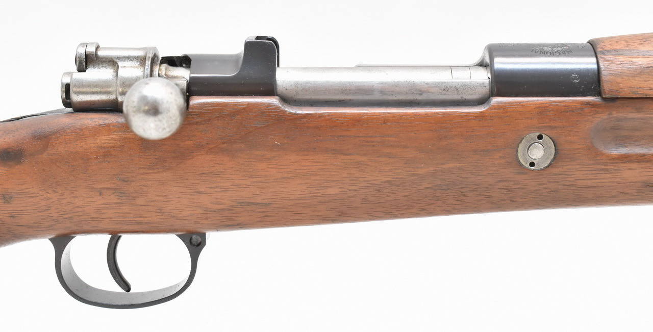 Militärgewehr mit bewährtem 98´er Mauser System aus Produktion der CZ / Ceskoslovenska Zbrojovka A.S. Brno. Der Hülsenkopf mit Staatswappen und Bezeichnung R.O.U. Ejercito Nacional 937 / Republica Oriental de Uruguay. Fertigungsjahr 1937. Unter der Modellbezeichnung " Mod. 1934 " lieferte die CZ den tschechischen VZ 32 Karabiner in einer nur 6000 Stück umfassenden Lieferung nach Uruguay. Leicht matter Originallauf. Mellrichstädter Beschuß 1985. Frankonia Vertriebsstempel. Putzstock fehlt. Leichte Trage-, Gebrauchs- und Lagerungsspuren sind vorhanden. Details siehe Bilder.