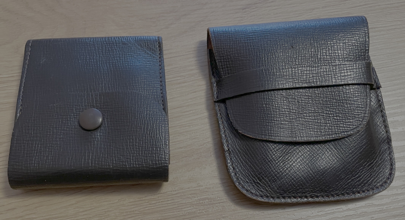 Das aufklappbare erste Etui mit Knopfverschluss enthält 7 gegeneinander versetzte Lederschlaufen für Kuglepatronen. Patronen etwa der Größe 30-06 sollten passen. Der Knopfverschluss hält sicher