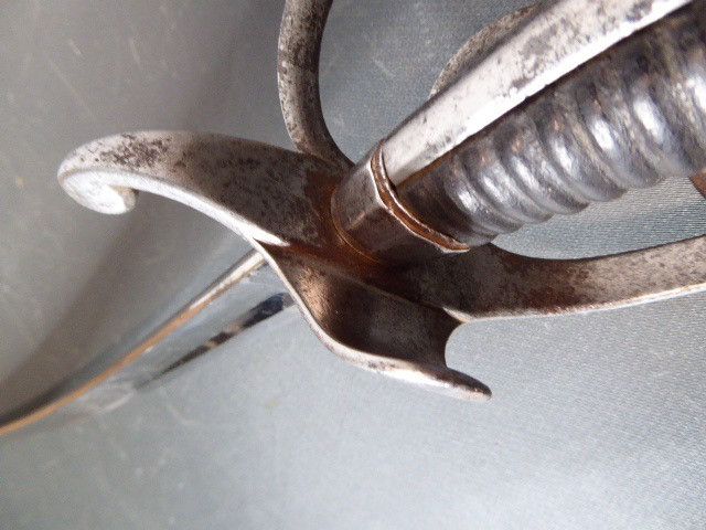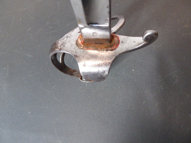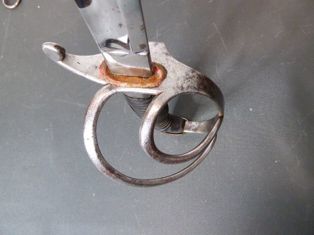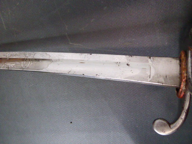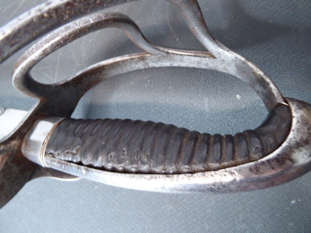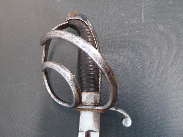 Aus meiner Sammlung gebe ich, ein alten Bayrische Offiz. Kavallerie Säbel, originalem Gehänge, Portepee Scheide Hersteller Z im Schild ab. Kenner werden es sicherlich wissen wo das Teil hingehört. Griff Holz mit Leder ummantelt. Gefäß Eisen mit zwei Nebenbügel. Einschneidige breite Klinge beidseitig mit Kehlungen und Initialen unter Krone geätzt, auf der Fehlschärfe einseitig Hersteller Z im Schild unter Krone. Scheide mit zwei Trageringe, dazu ist noch das originale Gehänge nicht mehr so Gut erhalten und das originale Portepee das noch ganz Gut ist. Das Teil ist im Sammelwürdigen Zustand. Alles andere entnehmen Sie Bitte den Fotos. Gesamtlänge: 102,3 cm, ohne Scheide: 99 cm, Klingenlänge: 84,5 cm, Klingenbreite: 2,8 cm. Kann zu jederzeit bei mir besichtigt werden. Privatauktion keine Rücknahme und Garantie.