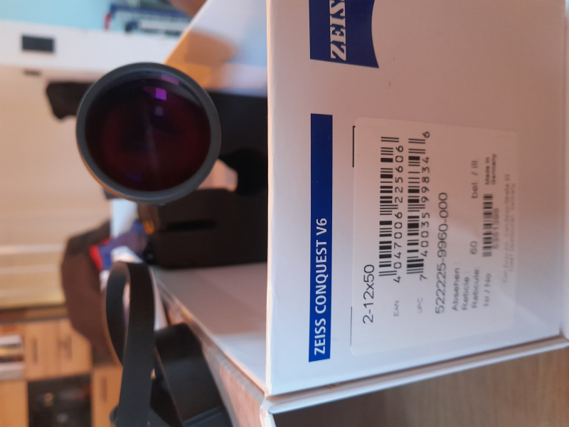 Sie bieten auf ein leicht gebrauchtes Zeiss-Zielfernrohr v6, 2-12x50, 30mm Mittelrohr in Originalverpackung, mit Flip und Beschreibung. ABSEHEN 60. Montagespuren am Tubus vorhanden. Bilder sind Teil der Beschreibung. Bieten Sie nur, wenn Sie den Zustand akzeptieren. Da es sich um einen Privatverkauf handelt, sind Rückgabe und Garantie durch durch mich ausgeschlossen. Auslandsversand ist gegen höhere Versandkosten möglich. Preisvorschläge sind ebenfalls möglich.