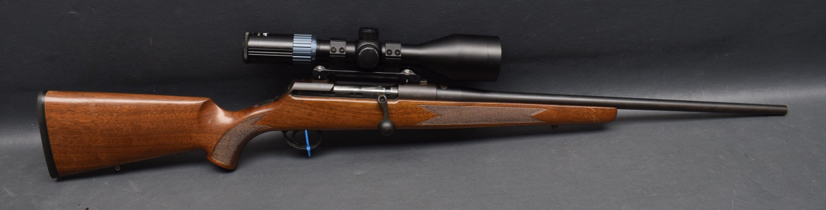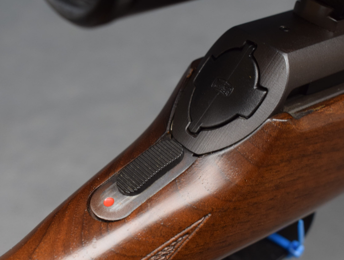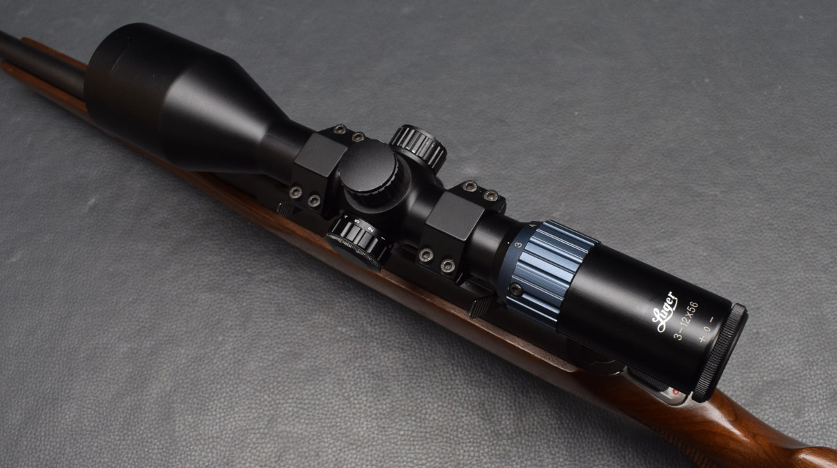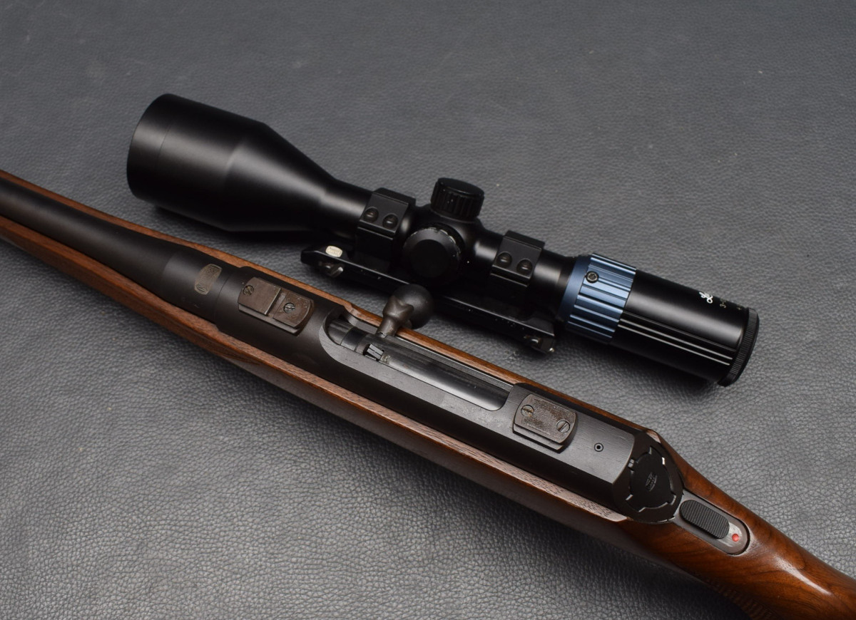 Schiebeischerung auf dem Kolbenhals, 4-Schuß Kastenmagazin. Montiert mit Zielfernrohr Luger5 3-12x56 Absehen 4 Lechtpunkt,