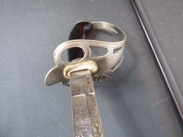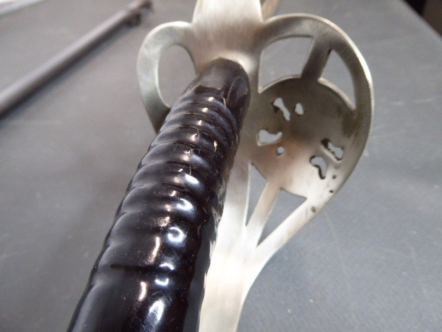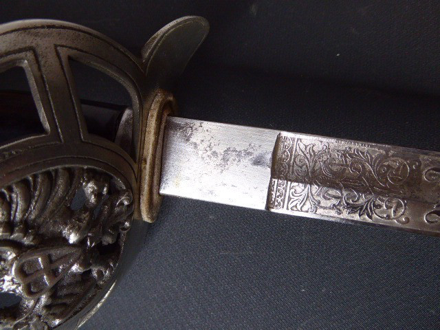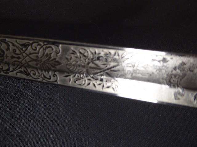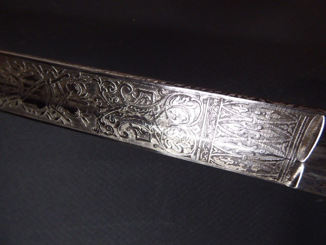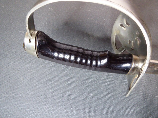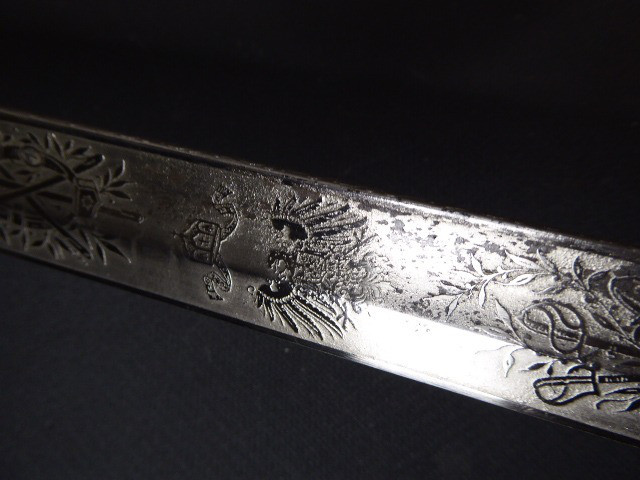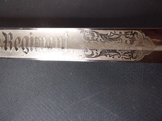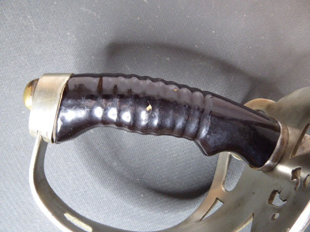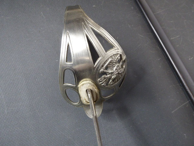 Aus meiner Sammlung gebe ich, einen alten langen Preußischen KD 89 mit Scheide LEIBGARDE HUSAREN REGIMENT mit Hersteller ab. Griff Holz mit Bakelit ummantelt, Bakelit mit Abplatzung. Großes Gefäß nicht ab klappbar aus Alpaka mit durchbrochenen Preußen Adler. Breite lange Klinge beidseitig mit Kehlungen und Hochätzungen, eine Seite LEIBGARDE HUSAREN REGIMENT mit Ornamenten, andere Seite mit Preußen Adler unter Krone und Militärischen Ornamenten. Auf der Fehlschärfe Hersteller W. FINKE POTSDAM. Das Teil ist im Guten Sammelwürdigen Zustand. Alles andere entnehmen Sie Bitte den Fotos. Gesamtlänge: 102, cm, ohne Scheide: 97,5 cm, Klingenlänge: 83,7 cm, Klingenbreite: 2,6 cm. Kann zu jederzeit bei mir besichtigt werden. Privatauktion keine Rücknahme und Garantie.