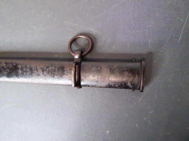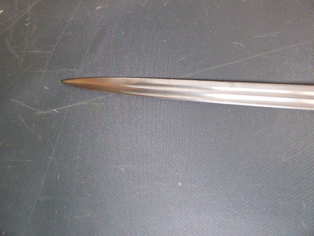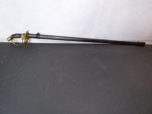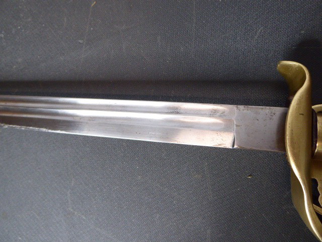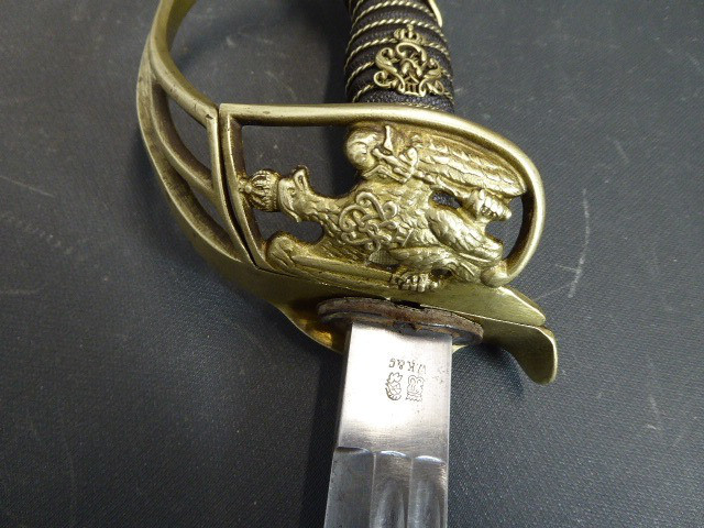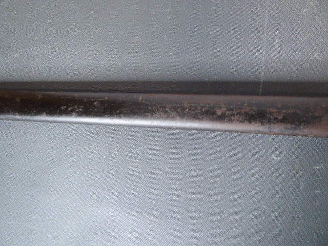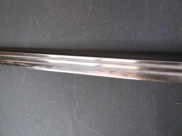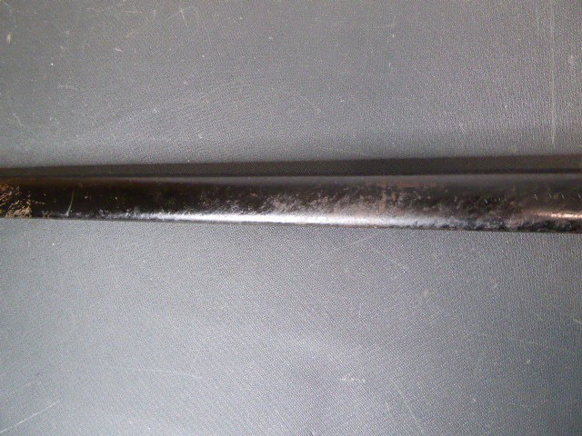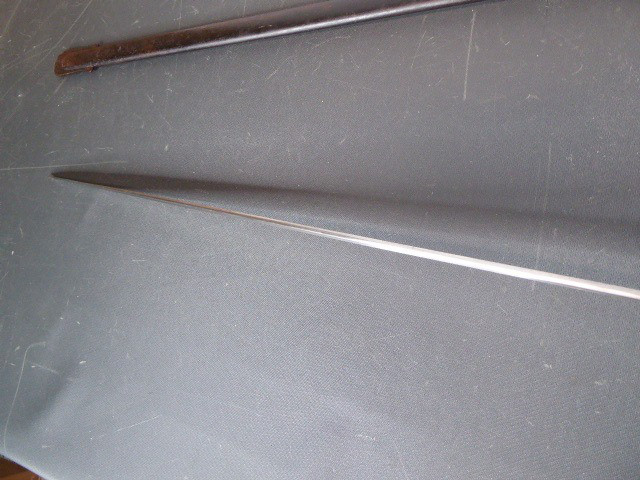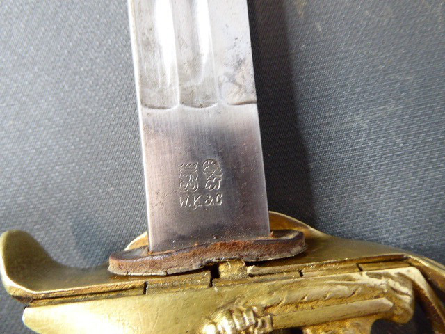Aus meiner Sammlung gebe ich, einen alten Preußischen Extra IOD 89 mit Scheide und Hersteller W.K.& C. ab. Griff Holz mit schwarzer Fischhaut ummantelt und Messingdraht Wicklung, eine Seite mit aufgelegten Initialen FRW unter Krone. Gefäß ab klappbar Messing mit durchbrochenen Preußen Adler. Breite lange Klinge beidseitig mit zwei Kehlungen. Auf der Fehlschärfe Hersteller W.K.& C. Scheide Stahl mit ca. 65 % originalem Lack. Das Teil ist im Guten Sammelwürdigen Zustand. Alles andere entnehmen Sie Bitte den Fotos. Gesamtlänge: 97,5 cm, ohne Scheide: 95,5 cm, Klingenlänge: 81 cm, Klingenbreite: 2,5 cm. Kann zu jederzeit bei mir besichtigt werden. Privatauktion keine Rücknahme und Garantie.