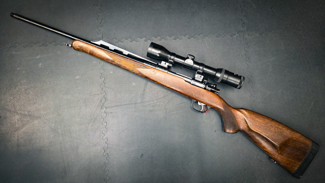 Der 52 cm lange Lauf ist innen spiegelblank. Ein Mündungsgewinde M14x1 wurde fachgerecht von uns angebracht; die Waffe wurde anschließend im November 2024 in München neu beschossen. Die Repetierbüchse verfügt über eine 45°-Sicherung sowie einen Rückstecher-Kombiabzug, der sowohl jagdlich sicher als auch präzise nutzbar ist.
