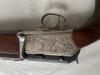Waffe wurde ca.14 Jahre auf der Jagd geführt. Schaft mit kleinen Kratzern, Lauf im vorderen Bereich Brünierung abgegriffen. Am Kammerstengel löste sich immer der Spannstift, deshalb Schweißpunkt oben anbringen lassen, dass der Kammerstengel nicht wackelt. Lauf besitzt im vorderen Bereich vier Gasentlastungsschlitze (ab Werk). Verschluß bewegt sich sehr leichtgängig ohne „ruckeln“ o.Ä., sehr schnelles Repetieren möglich. Schußleistung mit selber geladener Munition sehr gut (auf 100m liegend aufgelegt Streukreis ca. 2-3 cm / 5 Schuß /mit ZF geschossen). ZF Montage nicht im Lieferumfang enthalten. Kasten hat auf beiden Seiten sehr schöne Gravur (Rehwild). Lauflänge ca. 57 cm, Schaft (Schaftrücken bis Abzug) ca. 35,5 cm. Zusätzlich ist am Hinterschaft unten ein Schaftmagazin für 4 Patronen vorhanden (Deckel ebenfalls graviert).