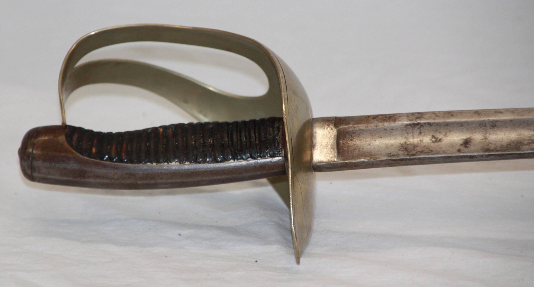 Alters- und Gebrauchsspuren. Total etwa 91 cm. Klinge etwa 77,5 cm.