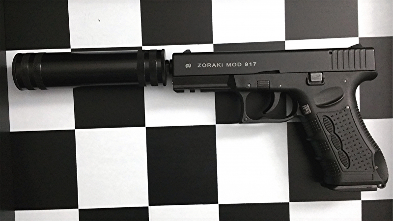 ( Den SD kann man auch auf einem Schreckschussrevolver mit Gewinde montieren.