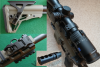Die Originalteile werden mitgeliefert: Haenel Match-Abzug, Sicherung, Abzugsbügel, Plastikgriff, einseitiger Ladehebel, Mündungsfeuerdämpfer, Schaftbacke kurz, Ersatzpins.