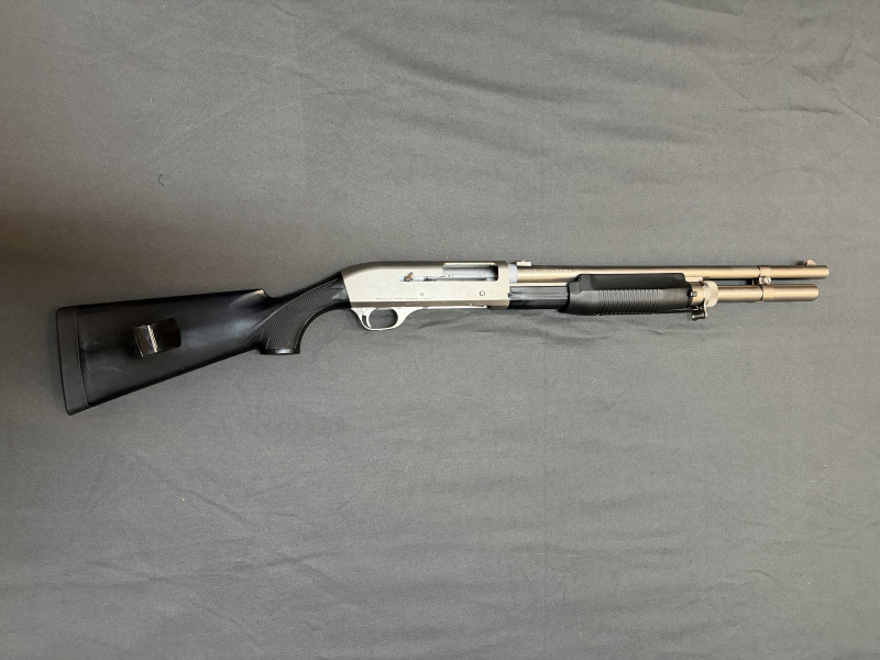 Zum Verkauf steht eine Benelli M3 Super 90 Kromo Selbstladeflinte, umschaltbar auf Vorderschaftrepetier Funktion im Kaliber 12/76