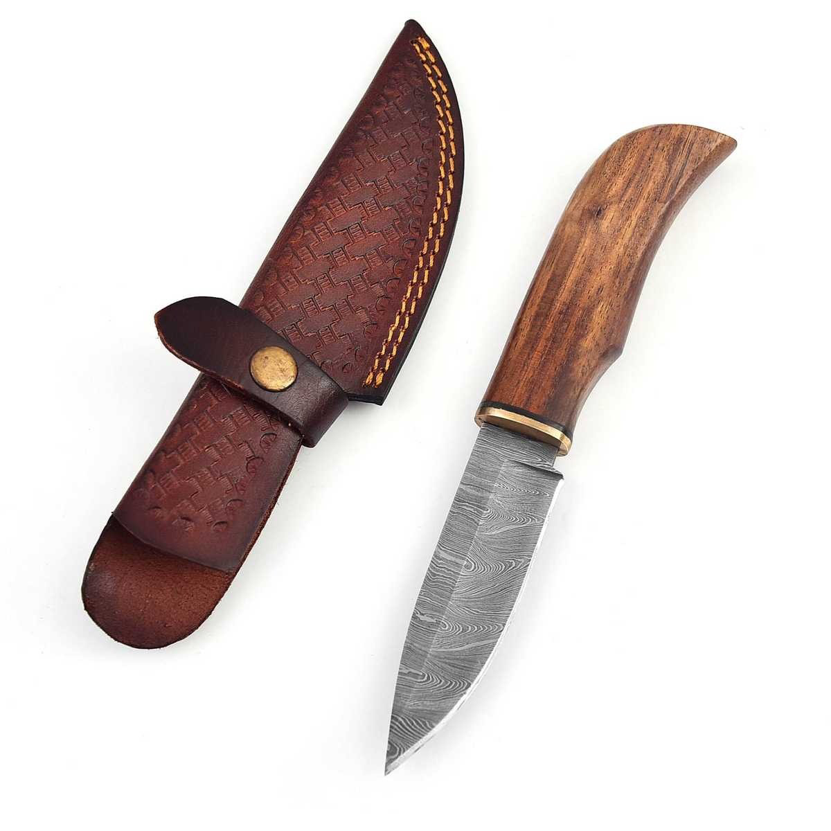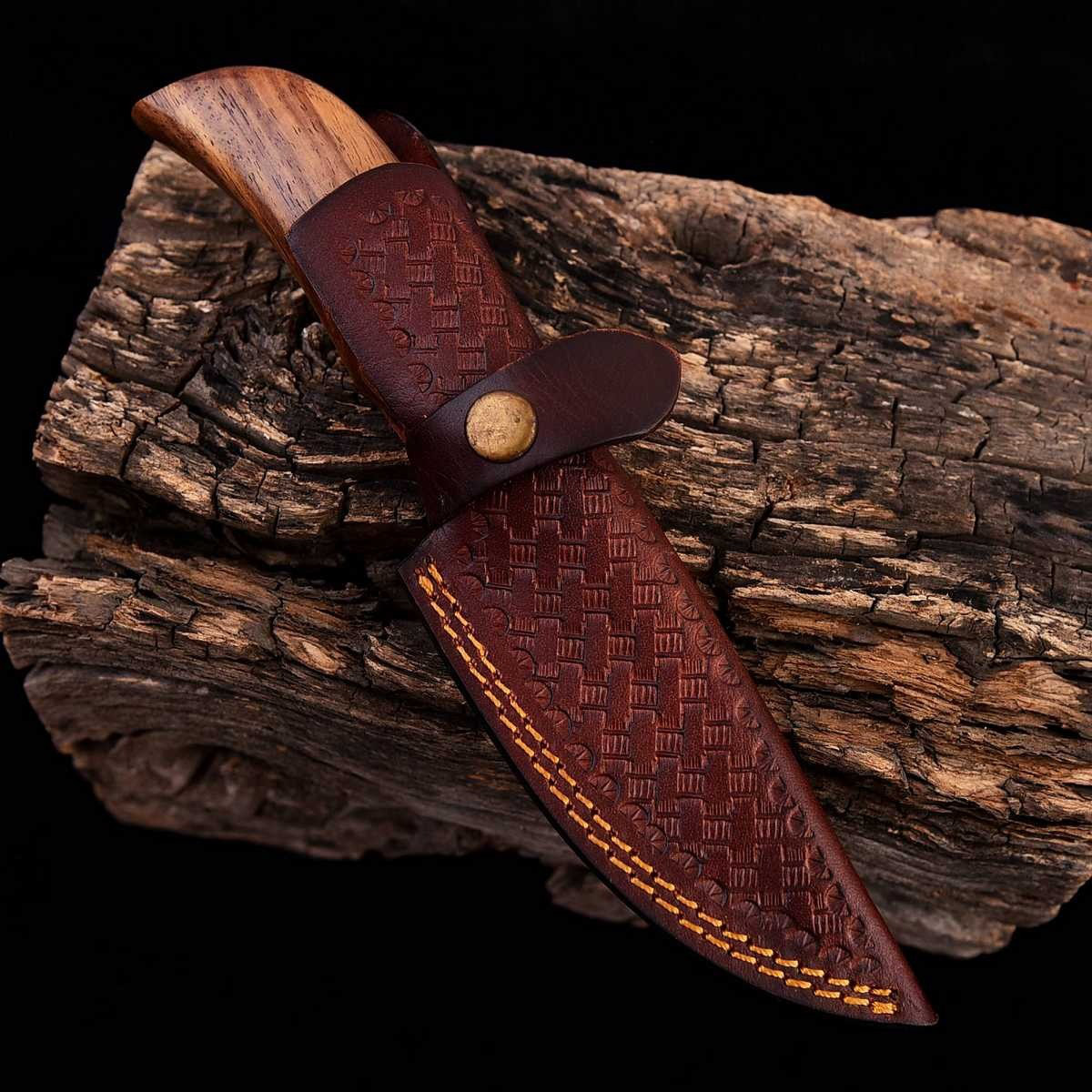 Hier erhalten Sie ein sehr schönes Hand geschmiedetes  Damast Jagd Messer in reizvollem Torsion Muster.Die ebenfalls Hand gefertigte Leder Scheide besteht aus Rind Leder.