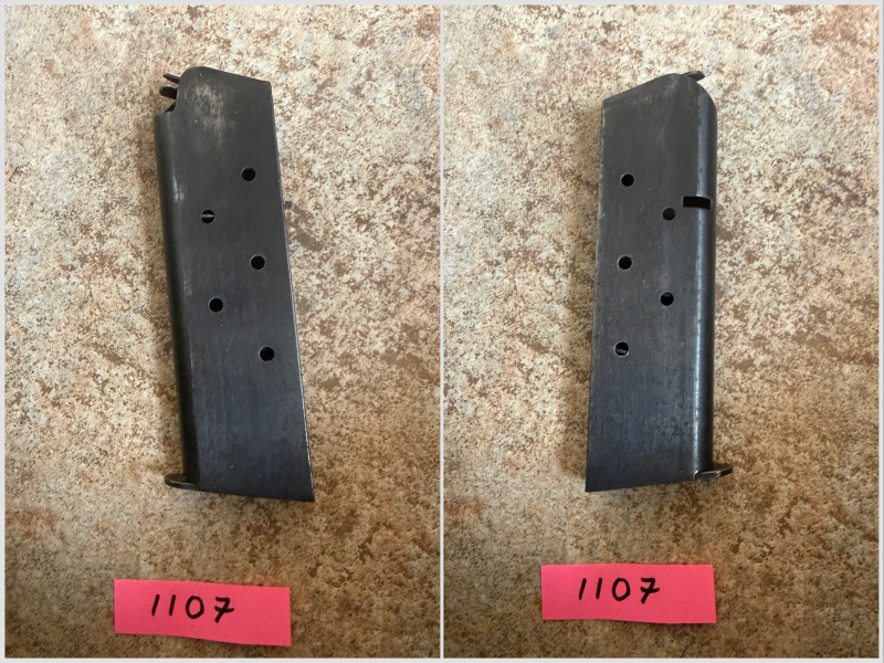 Dieses sogenannte Typ I Magazin, Ausführung "pinned base" wurde während des 2. Weltkrieg für die 1911A1 direkt bei Colt in Hartford produziert. Es handelt sich hier nicht um einen Kontrakt einer Fremdfirma wie Little oder Risdon, etc. Das Magazin passt natürlich in alle 1911er wie zb. Colt, Remington, Ithaca, US&S, usw.