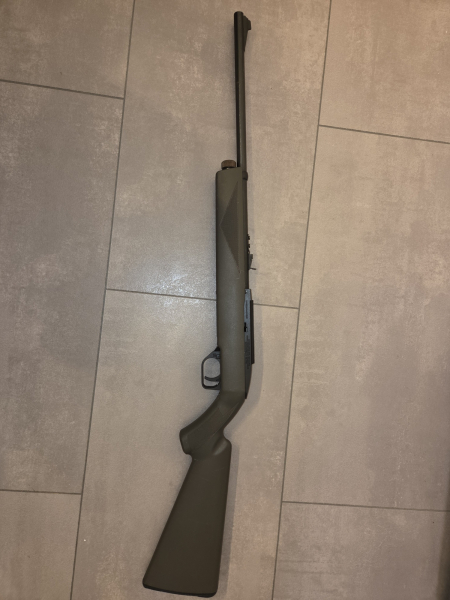 Gebrauchtes CO2-Semi Automatik Gewehr von Crosman, Modell 1077 mit 12-schüssigem Trommelmagazin, ca 30 Jahre alt, selten benutzt, defekt, weil wenn man die Co2 Kapsel einlegt und fest dreht, das Co2 entweicht, man kann nur 1-2 Schuss abgeben, dann ist die Kapsel leer. Kratzer und Gebrauchsspuren bleiben nach 30 Jahren leider nicht aus, Zustand siehe Fotos.