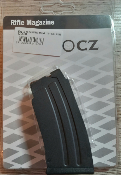 Verkaufe hier ein neuwertiges CZ 457-10er Stahlmagazin für das Kaliber .22 LR , paßt auch für die Modelle CZ 452,455 und 512 . Excellente CZ-Qualität und kein Plastik.