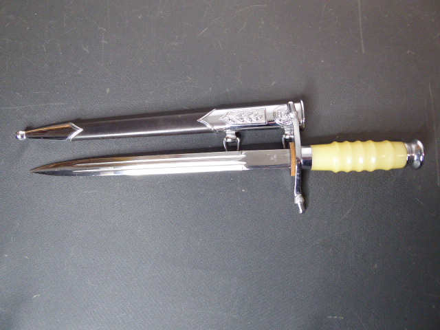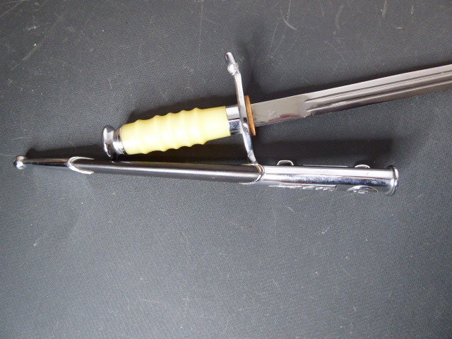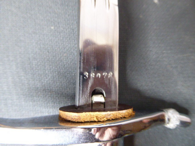 Aus meiner Sammlung gebe ich, einen alten DDR Ehrendolch Nr. 38076 ohne Gehänge mit Hersteller Mülhausen 70er Jahre ab. Ist 100% ein Original Dolch aus der Zeit. Klinge mit Nr. 38076 und Hersteller Mülhausen Stemplung, frühe Ausführung Scheide Oval nicht Scharfkantig. Alles im Guten Sammelwürdigen Zustand. Alles andere entnehmen Sie Bitte den Fotos. Kann zu jederzeit bei mir besichtigt werden. Privatauktion keine Rücknahme und Garantie.