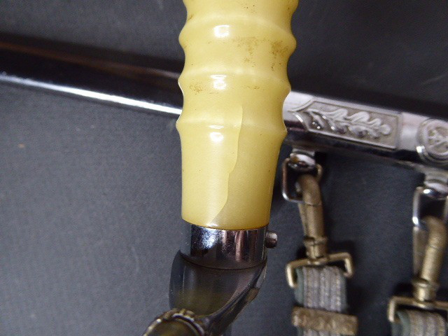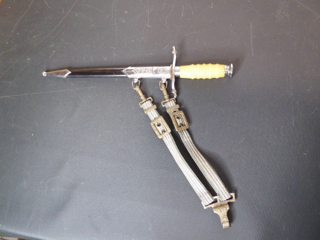 Aus meiner Sammlung gebe ich, einen alten DDR Ehrendolch Nr. 70974 mit 3 Loch Gehänge Hersteller Mülhausen ca. 70er Jahre ab. Ist 100% ein Original Dolch aus der Zeit. Klinge mit Nr. 70974 und Hersteller Mülhausen Stemplung. Scheide oval nicht Scharfkantig, frühe Ausführung mit 3 Loch Gehänge. Alles im Guten Sammelwürdigen Zustand. Alles andere entnehmen Sie Bitte den Fotos. Kann zu jederzeit bei mir besichtigt werden. Privatauktion keine Rücknahme und Garantie.