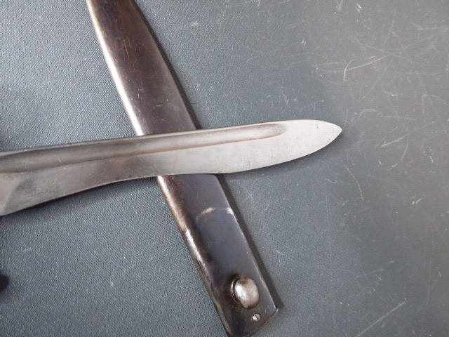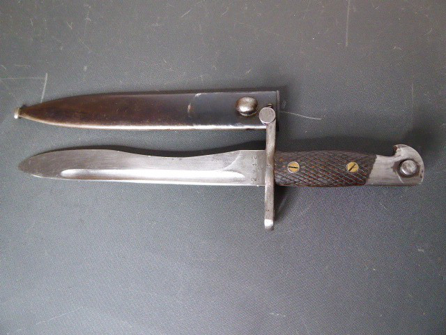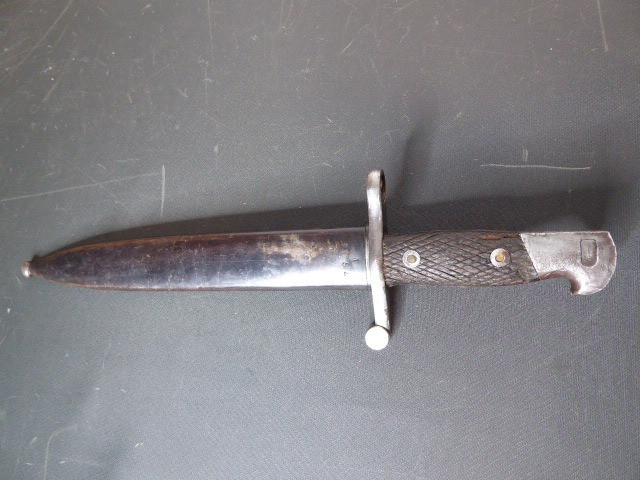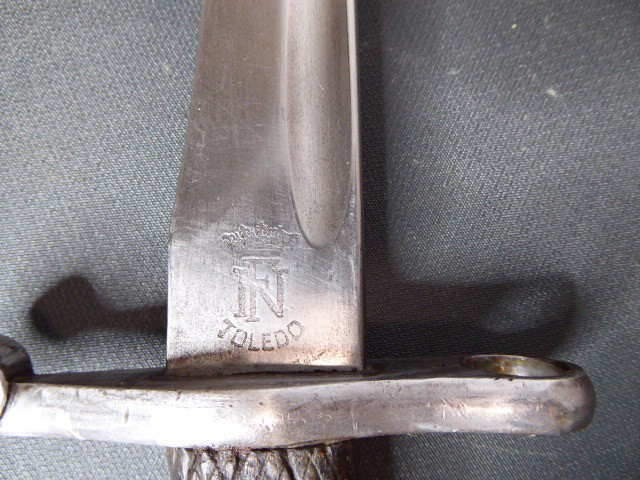Aus meiner Sammlung gebe ich, ein altes Spanisches Bajo mit Stahlscheide Hersteller Toledo ab. Griff zwei Holzschalen. Parierung mit U gestempelt, Klinge mit Hersteller und Nr. 2912 G. Scheide aus Stahl. Das Teil ist im Guten Sammelwürdigen Zustand. Alles andere entnehmen Sie Bitte den Fotos. Gesamtlänge: 39,5 cm, ohne Scheide: 37,1 cm, Klingenlänge: 24,8 cm, Klingenbreite: 3,1 cm. Kann zu jederzeit bei mir besichtigt werden. Privatauktion keine Rücknahme und Garantie.