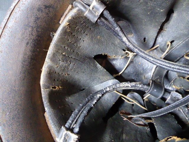 Aus meiner Sammlung gebe ich, einen alten 3. Reich Feuerwehr Stahlhelm schwarz mit Innenfutter und Trageriemen ab. Originaler Stahlhelm mit Resten der Original Lackierung, Innenfutter und Trageriemen. Kenner werden es sicherlich wissen was das für ein Stahlhelm ist. Das Teil ist auf jedenfalls Sammelwürdig. Alles andere entnehmen Sie Bitte den Fotos. Kann zu jederzeit bei mir besichtigt werden. Privatauktion keine Rücknahme und Garantie.