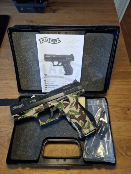 Liebe eguner, Ich löse meine Sammlung auf. Die P99 Camouflage Edition von Demmer befindet sich in einem 1A Zustand, jedoch hat sie am Grif einen leichten abplatzer, Bitten den bildern entnehmen. Geschossen habe ich mit der P99 nie, sie lag immer wohl behütet in meiner Vitrine. Alles was Sie auf dem Foto sehen gehört nach Auktionsende Ihnen. Ich bitte um einen gültigen Altersnachweis. Viel Spaß beim bieten ! Bei Fragen stehe ich ihnen gerne zur Verfügung. In den nächsten Tagen/ Wochen werden noch die ein oder anderen Schmuckstücke inseriert