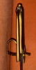 Leicht gebogene Klinge mit beidseitiger Hohlkehle, keine Ätzung aufgrund der Korrosion mehr sichtbar. Messinggefäß mit Griffbügel, rautenförmigen Parierstangenlappen und Daumenring.