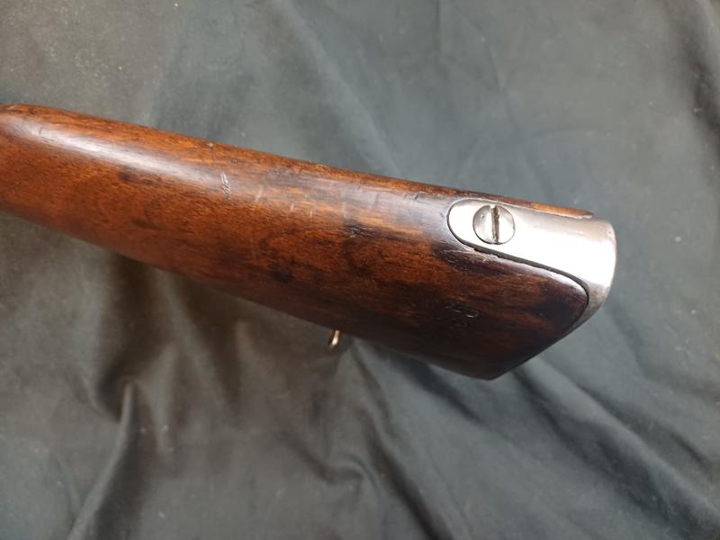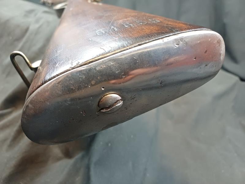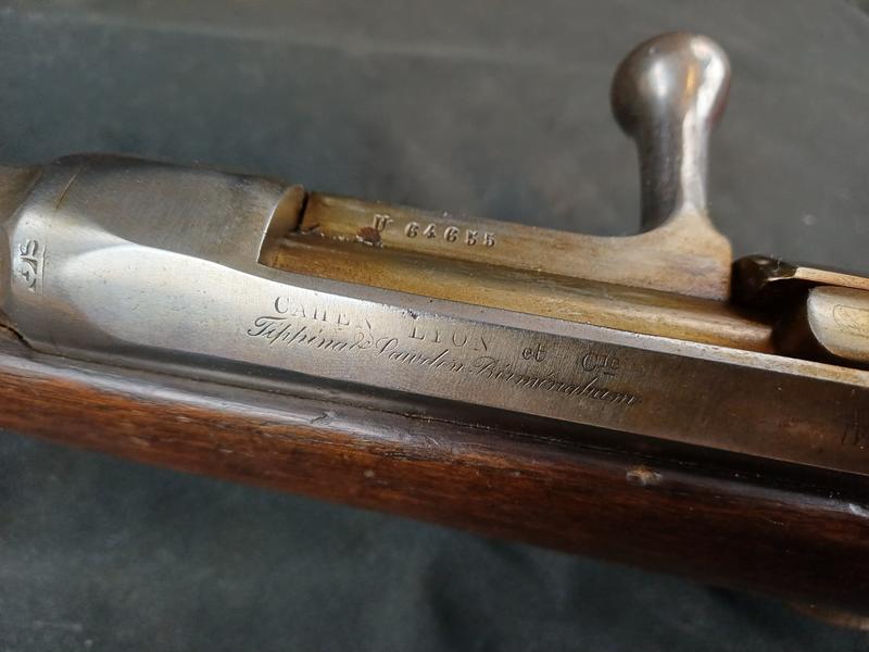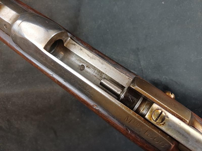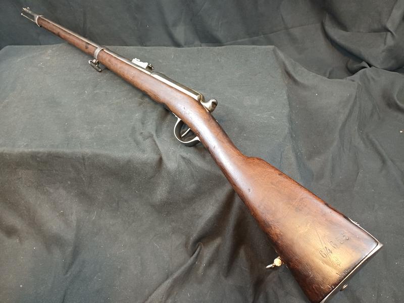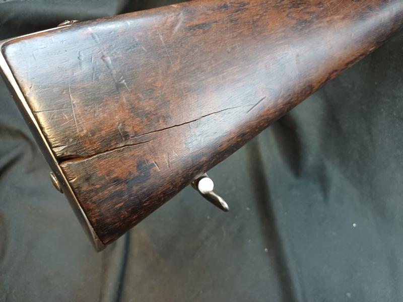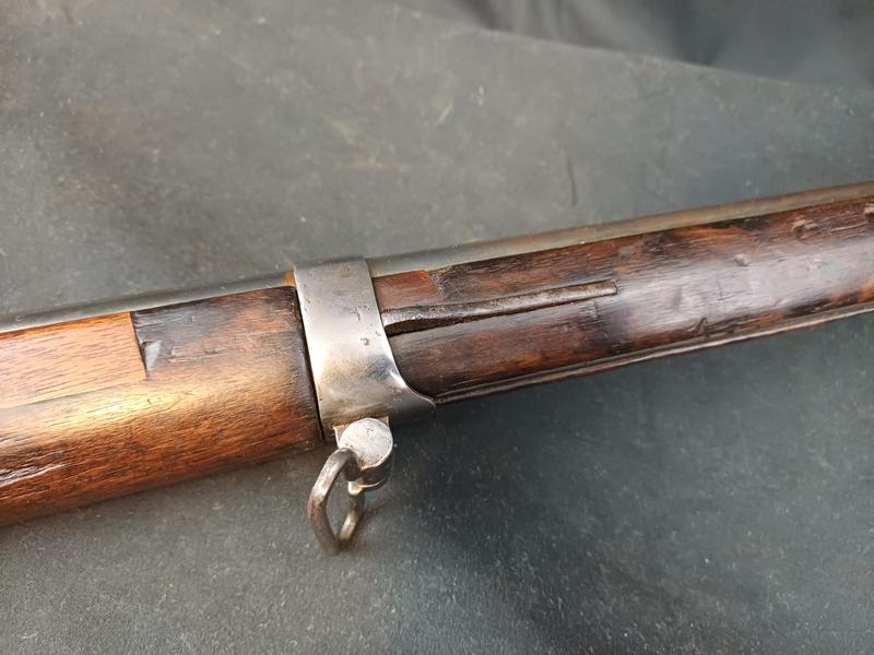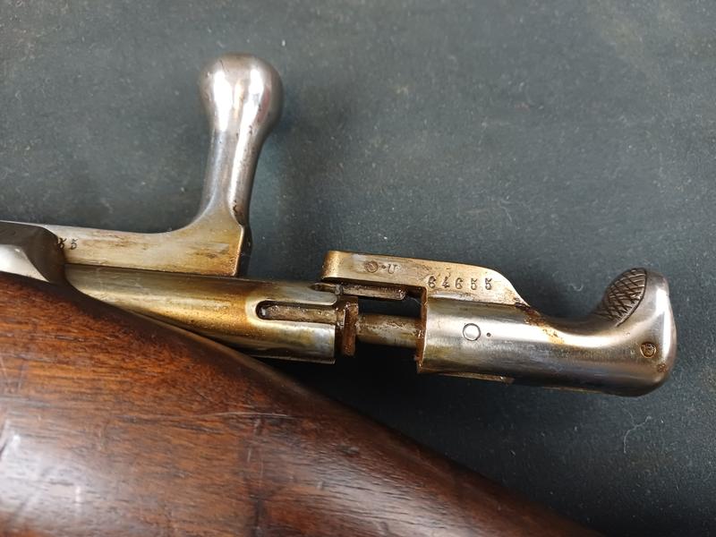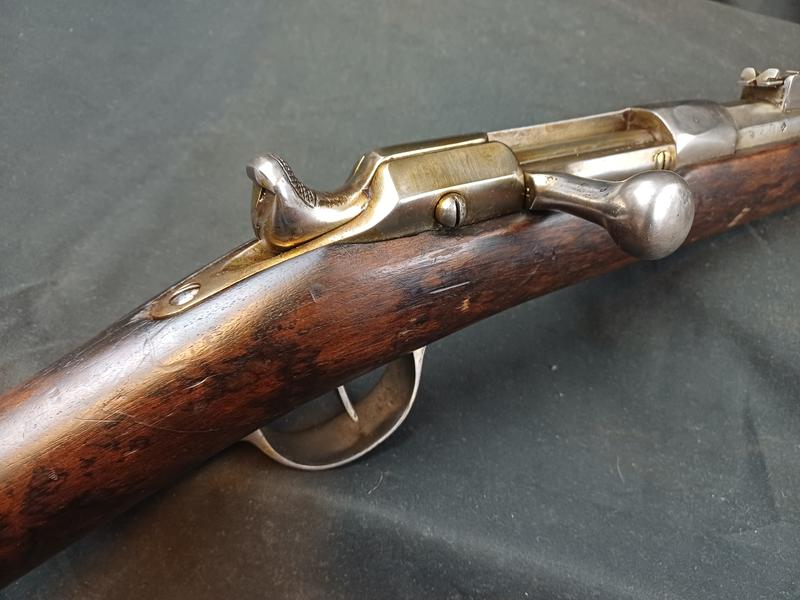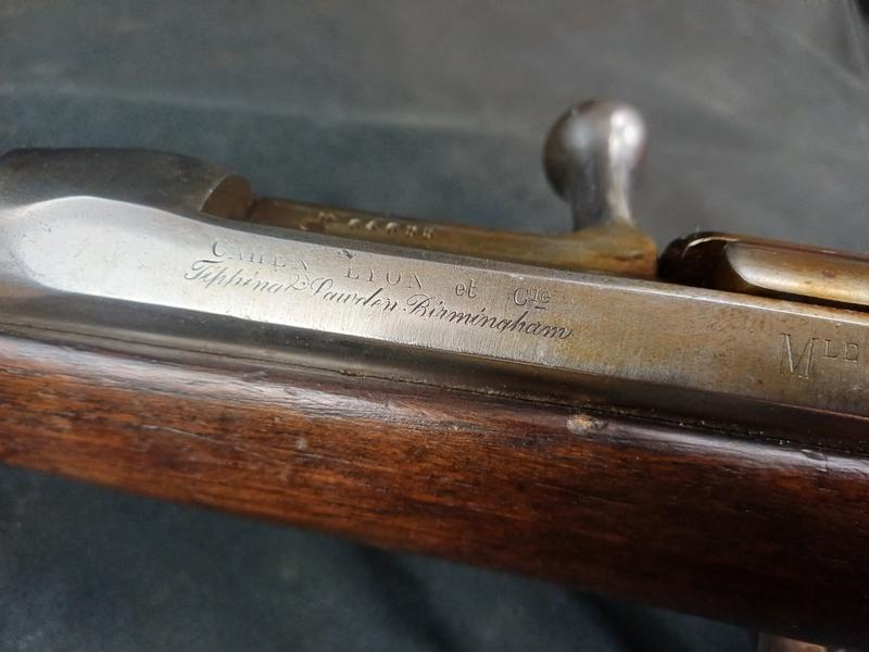 Dieses Chassepot wurde mal überarbeitet, ist technisch einwandfrei und sollte seinen Dienst zielgenau verrichten. Noch gut sichtbare Stempel und Punzen. Das Schloss läuft tadellos. Ein sicherlich nicht alle Tage anzutreffender Chassepothersteller!
