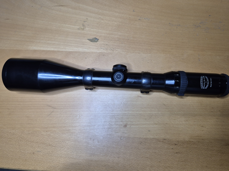 Zielfernrohr von Schmidt& Bender 2,5-10x56 mit Absehen 4 in gutem Zustand. War jahrelang mein treuer Begleiter auf meinem 98er und daher sind die MontageOBERteile der EAW-Schwenkmontage noch am Zielfernrohr. Verkauf von Privat, daher keine Rücknahme oder Garantie oder sonstige Ansprüche. Käufer trägt Versand oder Abholung vor Ort.