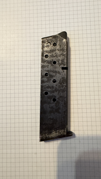 Verkaufe hier ein gebrauchtes, voll funktionsfähiges Magazin für die Radom VIS 35. Boden hat 2 kleine Löcher mit Gewinden drin, vermutlich zur Befestigung für eine Trageschlaufe. Die Oberfläche sieht etwas rauh und narbig aus, ist aber nur sehr oberflächlich die Brünierung die stellenweise abgenutzt ist. Versand versichert mit DHL und Sendungsverfolgung.