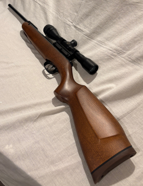 Zum Verkauf steht eine Weihrauch HW30K im Buchenholzschaft cal.177 4,5mm. Der Zustand ist absolut TOP. Zum Gewehr gibt es noch ein Nikko Stirling 4x32 Zielfernrohr mit Mil Dot Absehen dazu, welches zum Versand demontiert mitgeliefert wird. Die HW30 ist ein Einzelstück mit einem Laufgewinde 1/2“ UNF für alle gängigen Schalldämpfer. Im Gewehr selber ist ein TbT Tuningkit(7,5Joule)verbaut. Der sowieso perfekte Abzug ist komplett demontiert worden und nach Feinpolitur der Klinken wieder montiert worden, was einen absolut feines Abzugsverhalten ergibt. KEIN VERSAND INS AUSLAND