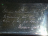 Kristallschale mit Silberdeckel mit Meistermarke , Einhorn , berühmte Silbermanufaktur Gebrüder Kühn, Schwäbisch Gmünd, aktiv seit 1860, 800 Silber , mit geschliffenen Glas ca. 14x9x6 cm, mit Widmung - Meinen ................. zur Erinnerung an der besten Küste der Nordsee - Unterschrift